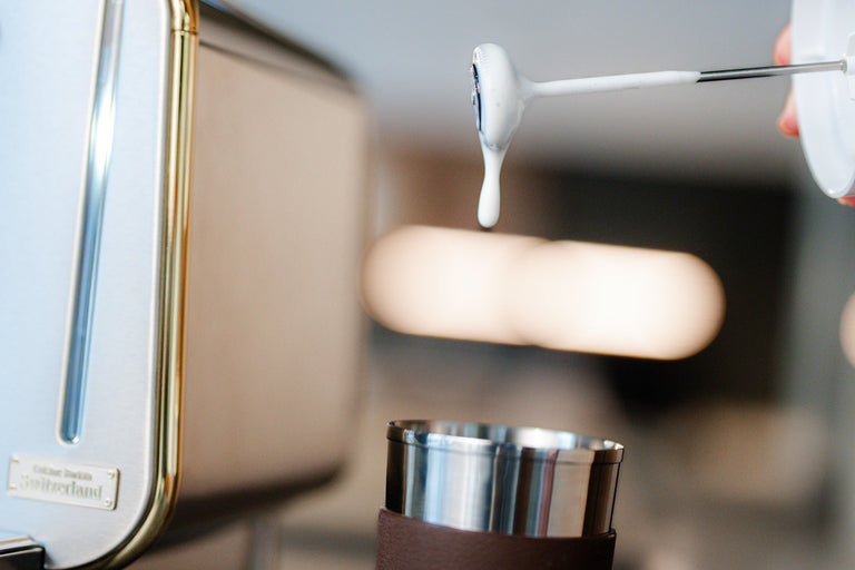Nous présentons le premier émulsionneur de lait pour gobelet au monde. Améliorez vos lattes et vos cappuccinos avec un lait parfaitement moussé directement dans le gobelet fourni avec votre machine.